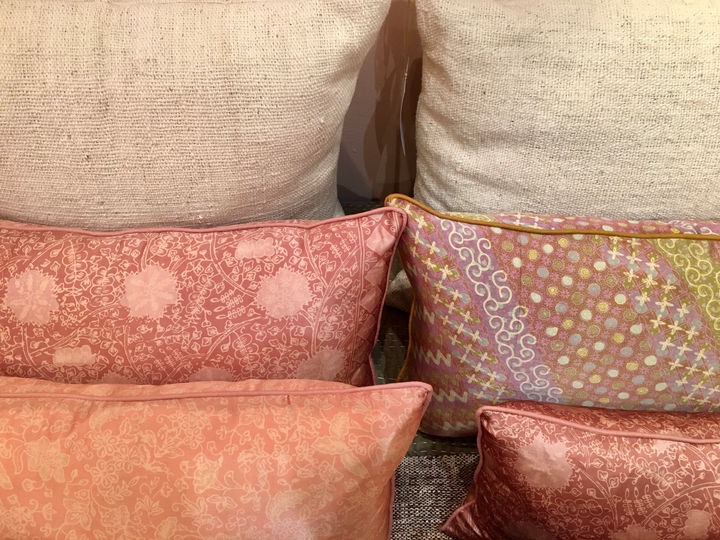 Lamps, Pillows, linen... Aliénor draws inspiration through her many travels ( California, India, Indonesia, Australia...) and develops her collections while working with materials, prints and colors that are dear to her.
